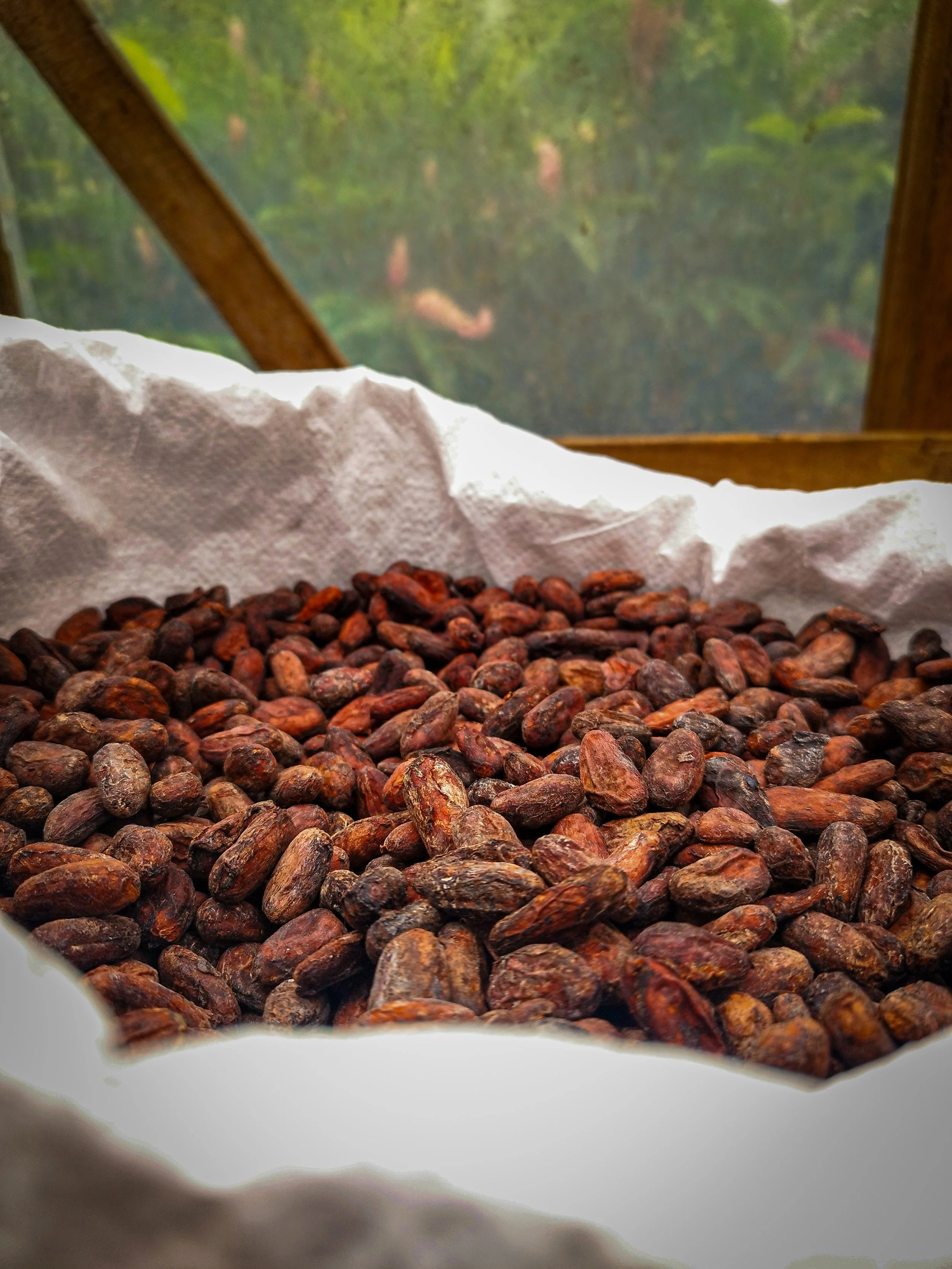 Nosotros hacemos un proceso "del árbol a la barra" y nuestro tueste es 100% artesanal en el cual tostamos las semillas de secas cacao al calor del fuego de leña un proceso que se ha realizado por generaciones en uestra familia y comunidad. Cada uno de nuestros productos tiene algo que contar de nuestra cultura.