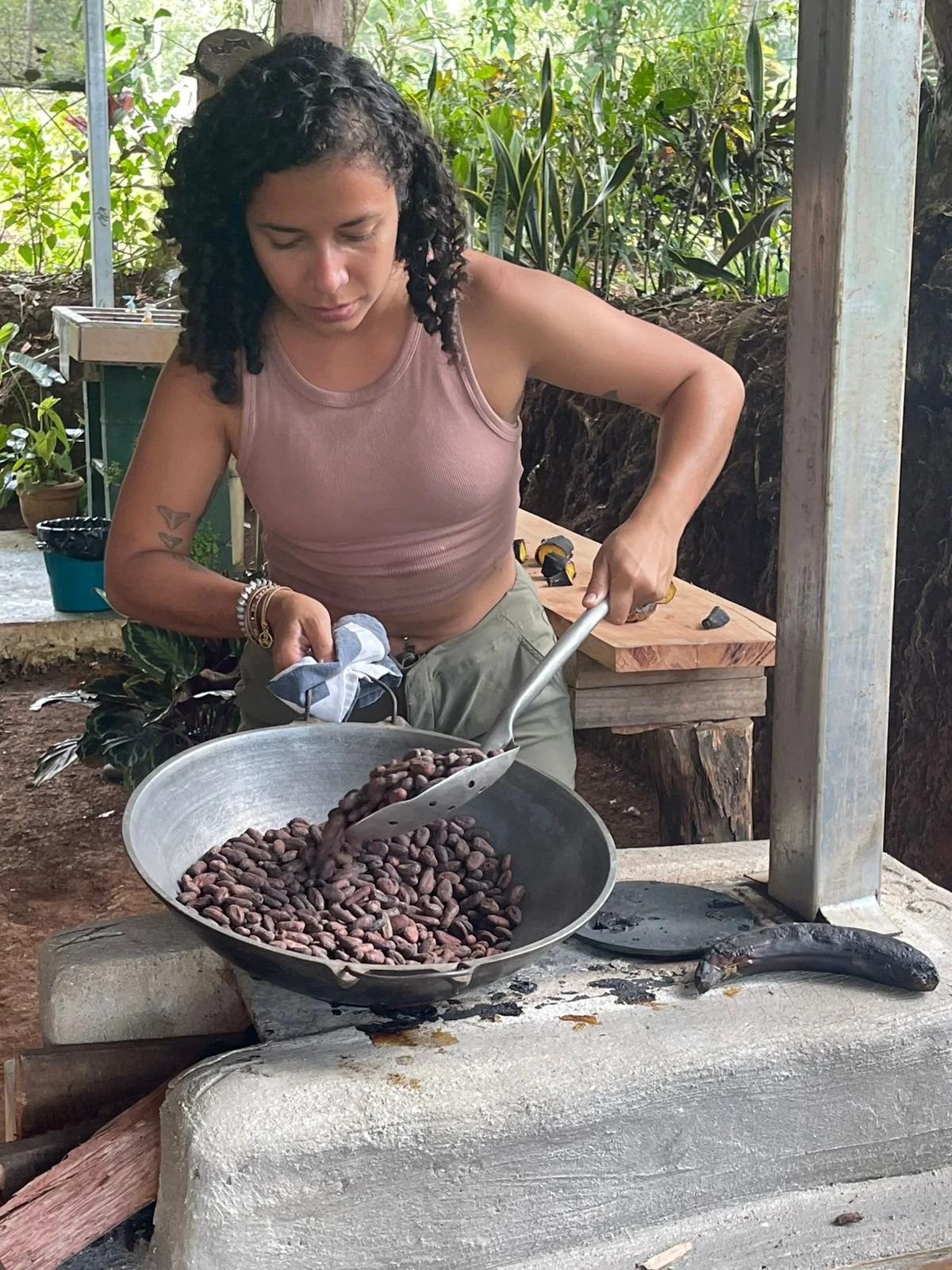 Tendrás la oportunidad de conocer todo el proceso de cultivo y fermentación del cacao, y de participar directamente en el tostado, pelado y molienda del cacao hasta obtener una pasta.