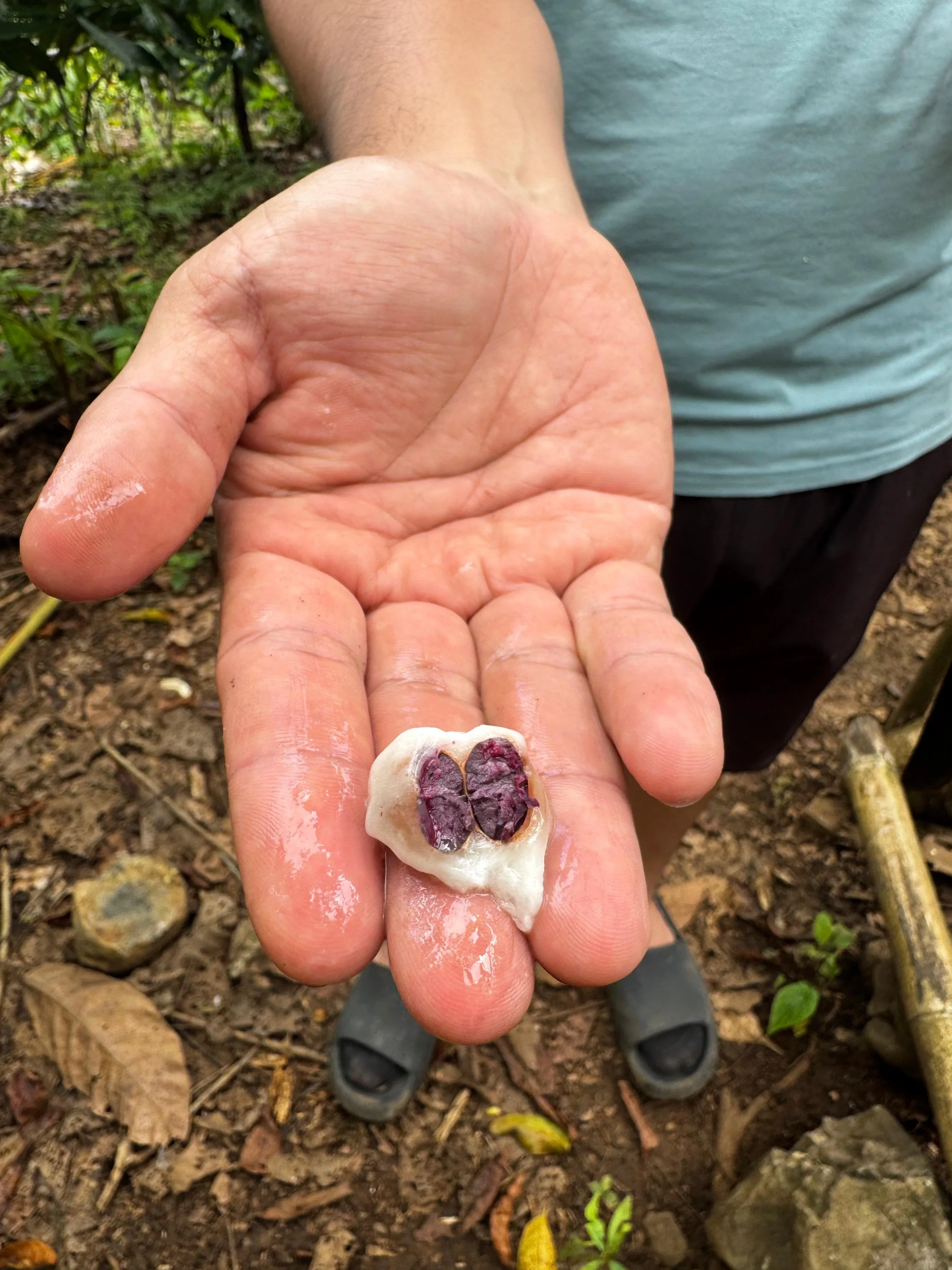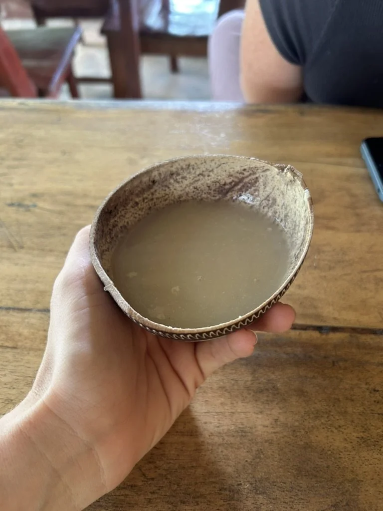 Les damos la bienvenida con chicha, una bebida tradicional fermentada de Costa Rica, junto con una introducción a nuestros productos, la cultura y el proceso de cultivo y producción del cacao.
